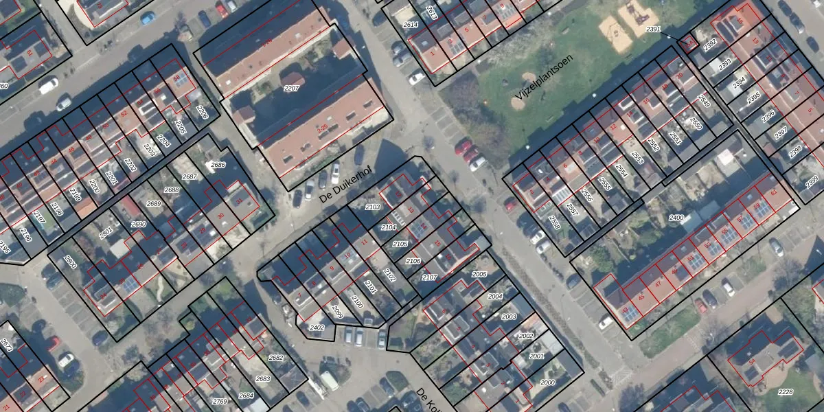 Gebruik de zoekbalk of klik op een perceel voor informatie over de adressen binnen dit perceel.