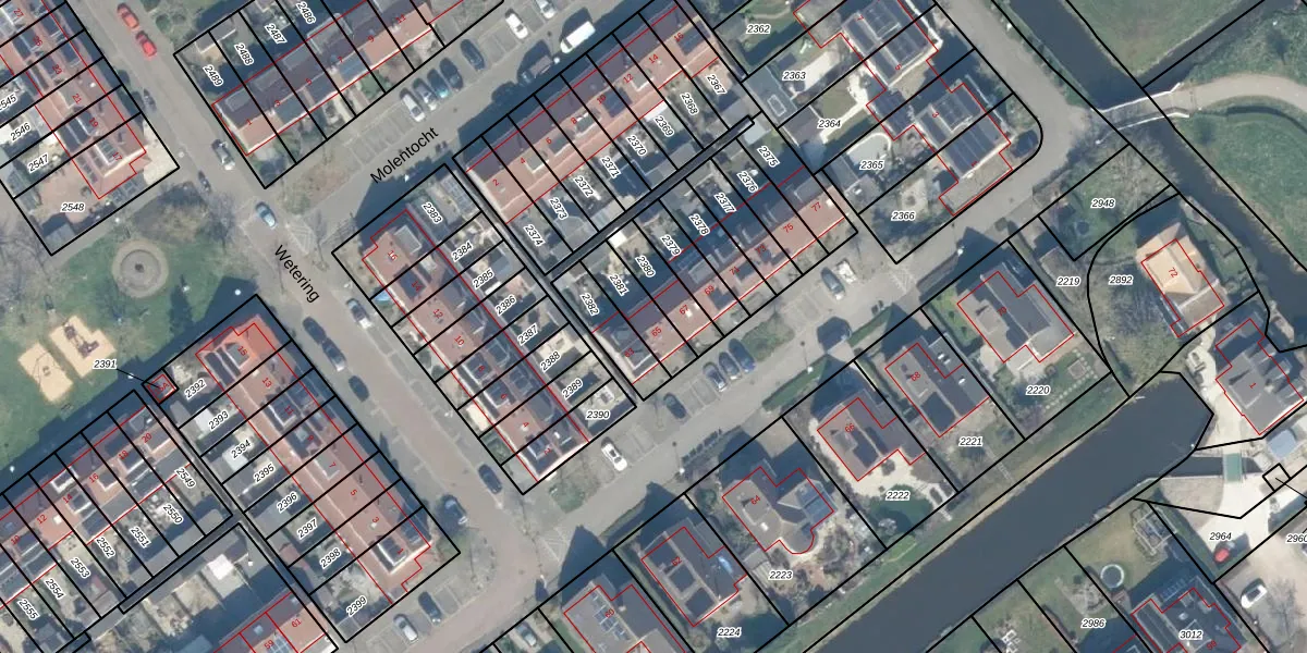 Gebruik de zoekbalk of klik op een perceel voor informatie over de adressen binnen dit perceel.