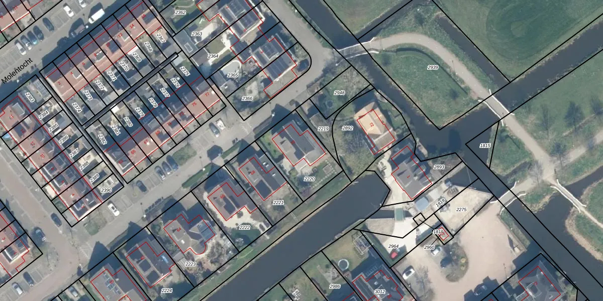 Gebruik de zoekbalk of klik op een perceel voor informatie over de adressen binnen dit perceel.