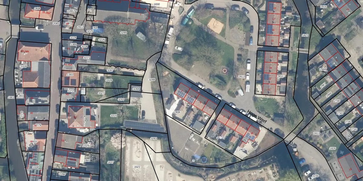 Hoge Werf 1 is gelegen op kadastraal perceel LST00B2406. Deze kadastrale aanduiding is uniek en wordt gebruikt door het Kadaster om eigendomsrechten en andere zakelijke rechten vast te leggen. Het perceel maakt onderdeel uit van de kadastrale gemeente Linschoten.