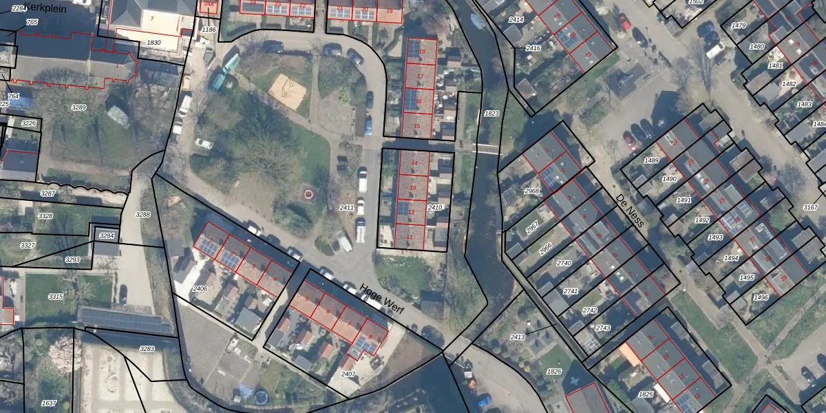 Het perceel waarop Hoge Werf 12 staat heeft een oppervlakte van 415 m². Dit is een groot perceel. De perceeloppervlakte wordt geregistreerd door het Kadaster. Gedetailleerde informatie over de maten van dit perceel kunt u vinden in het rapport Kadastrale kaart met maatvoering van Hoge Werf 12.