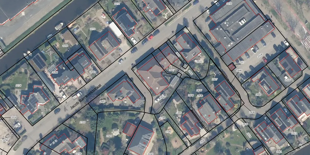 Jacob Barneveldstraat 14-A is gelegen op kadastraal perceel LST00B2656. Deze kadastrale aanduiding is uniek en wordt gebruikt door het Kadaster om eigendomsrechten en andere zakelijke rechten vast te leggen. Het perceel maakt onderdeel uit van de kadastrale gemeente Linschoten.