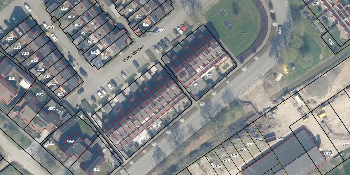 Het perceel waarop Veldzichtlaan 15 staat heeft een oppervlakte van 1562 m². Dit is een zeer groot perceel. De perceeloppervlakte wordt geregistreerd door het Kadaster. Gedetailleerde informatie over de maten van dit perceel kunt u vinden in het rapport Kadastrale kaart met maatvoering van Veldzichtlaan 15.