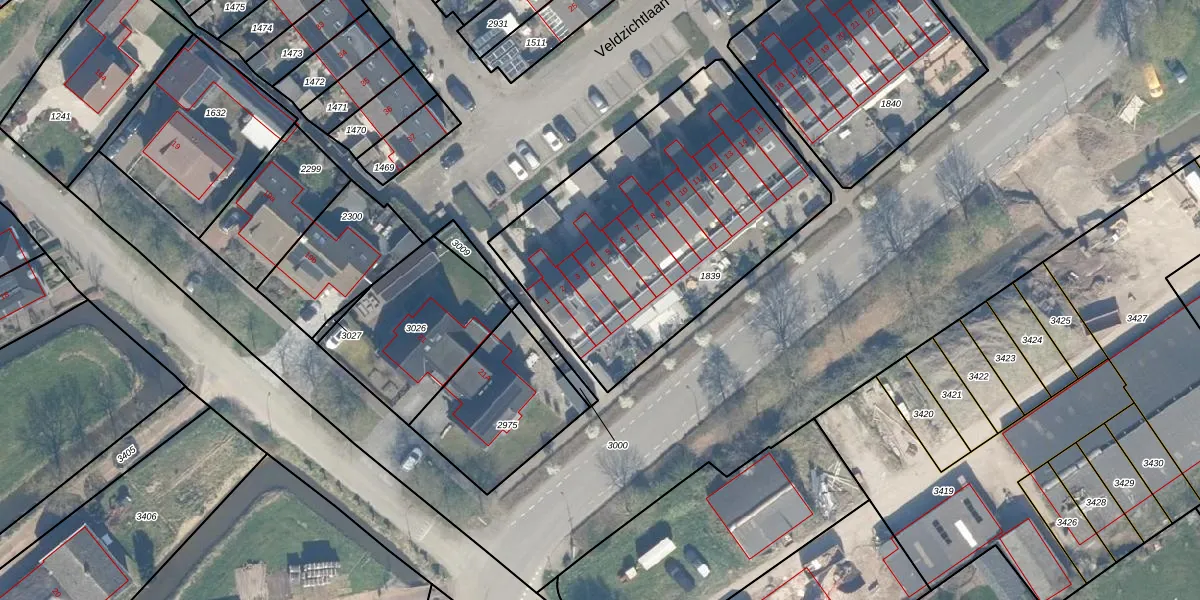 Het perceel waarop Veldzichtlaan 3 staat heeft een oppervlakte van 1562 m². Dit is een zeer groot perceel. De perceeloppervlakte wordt geregistreerd door het Kadaster. Gedetailleerde informatie over de maten van dit perceel kunt u vinden in het rapport Kadastrale kaart met maatvoering van Veldzichtlaan 3.