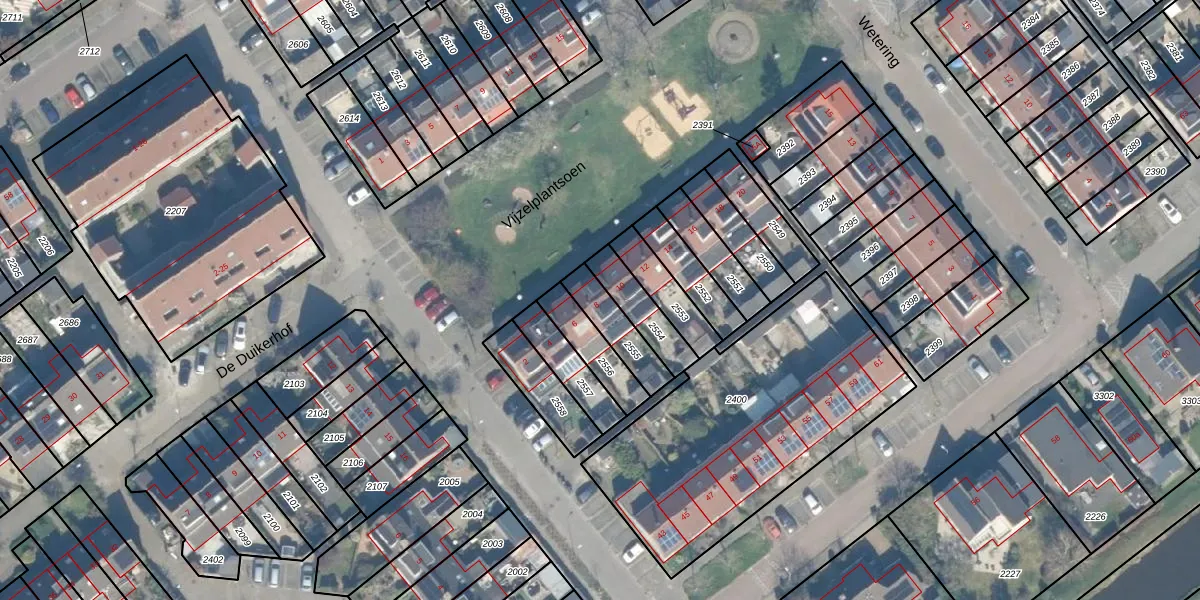 Gebruik de zoekbalk of klik op een perceel voor informatie over de adressen binnen dit perceel.