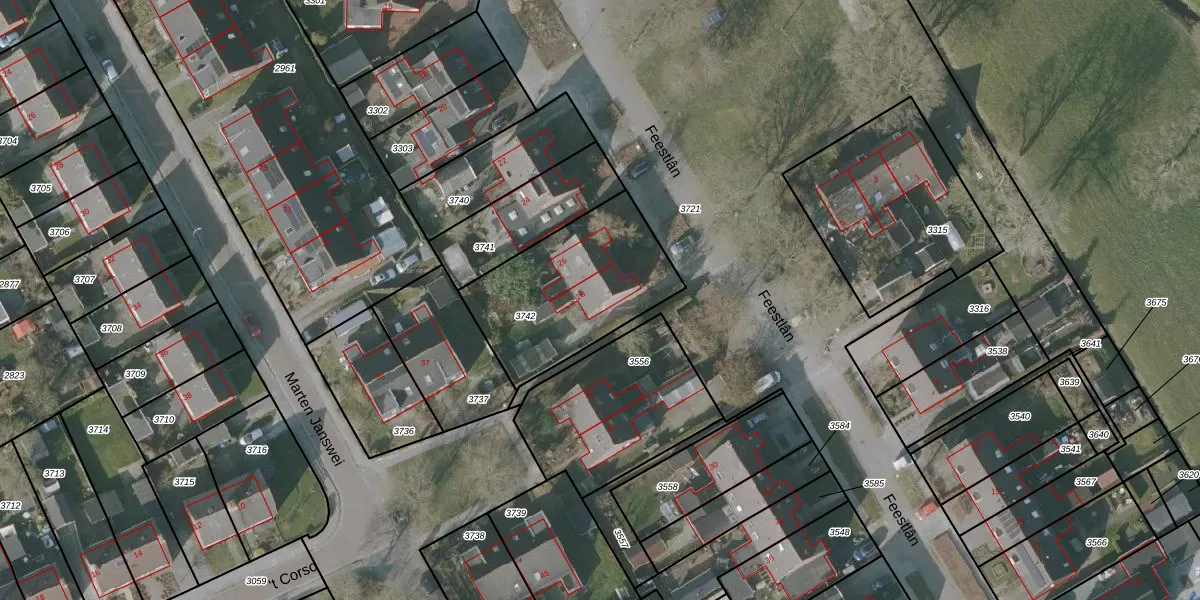 Het perceel waarop Feestlân 28 staat heeft een oppervlakte van 615 m². Dit is een groot perceel. De perceeloppervlakte wordt geregistreerd door het Kadaster. Gedetailleerde informatie over de maten van dit perceel kunt u vinden in het rapport Kadastrale kaart met maatvoering van Feestlân 28.