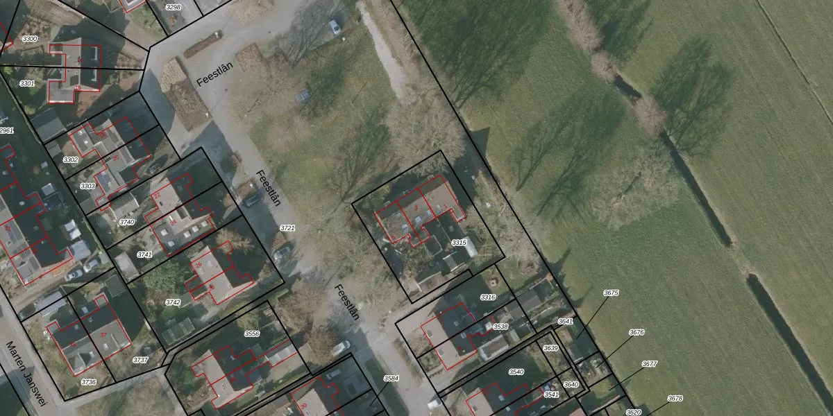 Feestlân 3 is gelegen op kadastraal perceel LPH00B3315. Deze kadastrale aanduiding is uniek en wordt gebruikt door het Kadaster om eigendomsrechten en andere zakelijke rechten vast te leggen. Het perceel maakt onderdeel uit van de kadastrale gemeente Lippenhuizen.