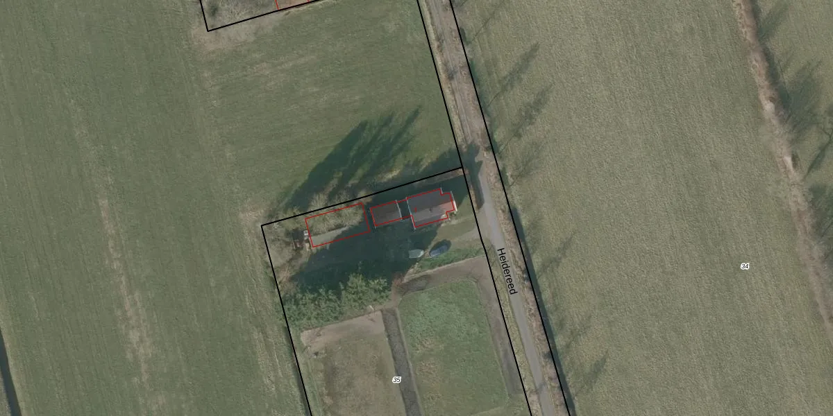 Het perceel waarop Heidereed 7 staat heeft een oppervlakte van 4040 m². Dit is een zeer groot perceel. De perceeloppervlakte wordt geregistreerd door het Kadaster. Gedetailleerde informatie over de maten van dit perceel kunt u vinden in het rapport Kadastrale kaart met maatvoering van Heidereed 7.