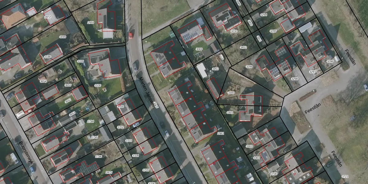 Het perceel waarop Marten Janswei 19 staat heeft een oppervlakte van 2633 m². Dit is een zeer groot perceel. De perceeloppervlakte wordt geregistreerd door het Kadaster. Gedetailleerde informatie over de maten van dit perceel kunt u vinden in het rapport Kadastrale kaart met maatvoering van Marten Janswei 19.
