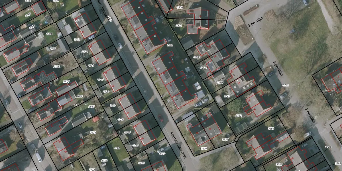 Het perceel waarop Marten Janswei 31 staat heeft een oppervlakte van 2633 m². Dit is een zeer groot perceel. De perceeloppervlakte wordt geregistreerd door het Kadaster. Gedetailleerde informatie over de maten van dit perceel kunt u vinden in het rapport Kadastrale kaart met maatvoering van Marten Janswei 31.