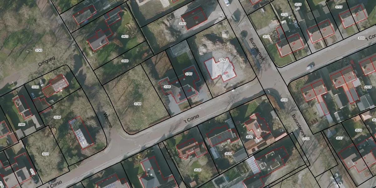 Het perceel waarop 't Corso 20-B staat heeft een oppervlakte van 430 m². Dit is een groot perceel. De perceeloppervlakte wordt geregistreerd door het Kadaster. Gedetailleerde informatie over de maten van dit perceel kunt u vinden in het rapport Kadastrale kaart met maatvoering van 't Corso 20-B.