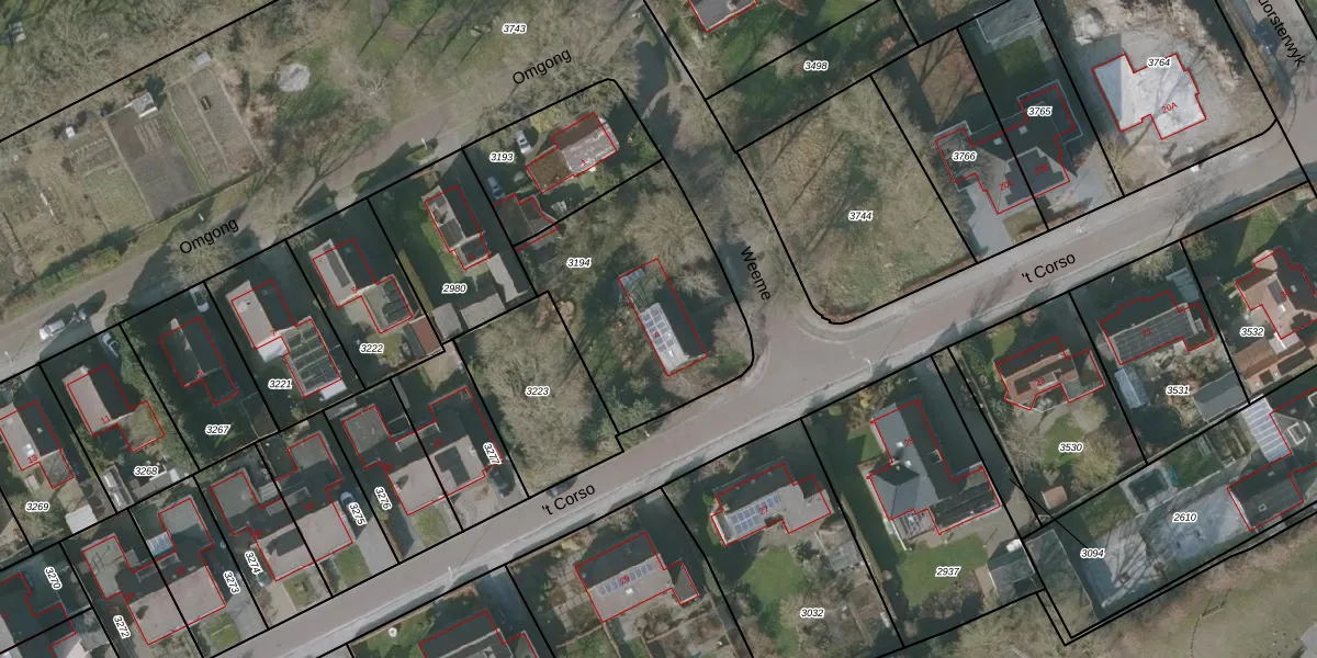 Gebruik de zoekbalk of klik op een perceel voor informatie over de adressen binnen dit perceel.