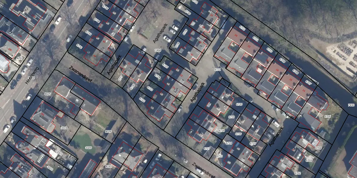 Het perceel waarop Agathapark 21 staat heeft een oppervlakte van 195 m². Dit is een middelgroot perceel. De perceeloppervlakte wordt geregistreerd door het Kadaster. Gedetailleerde informatie over de maten van dit perceel kunt u vinden in het rapport Kadastrale kaart met maatvoering van Agathapark 21.