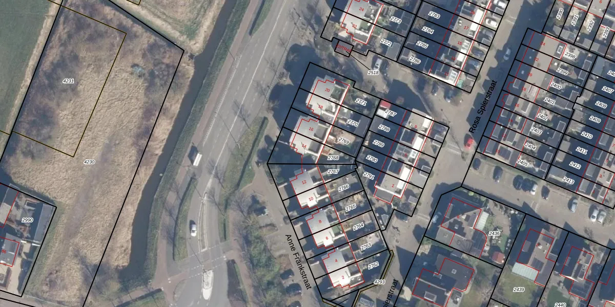 Anne Frankstraat 14 is gelegen op kadastraal perceel LSE00E2768. Deze kadastrale aanduiding is uniek en wordt gebruikt door het Kadaster om eigendomsrechten en andere zakelijke rechten vast te leggen. Het perceel maakt onderdeel uit van de kadastrale gemeente Lisse.