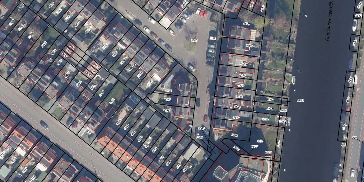 Gebruik de zoekbalk of klik op een perceel voor informatie over de adressen binnen dit perceel.