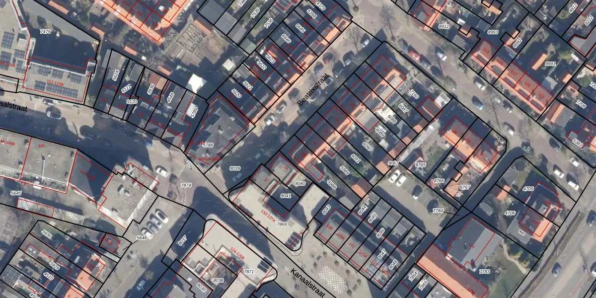 Gebruik de zoekbalk of klik op een perceel voor informatie over de adressen binnen dit perceel.