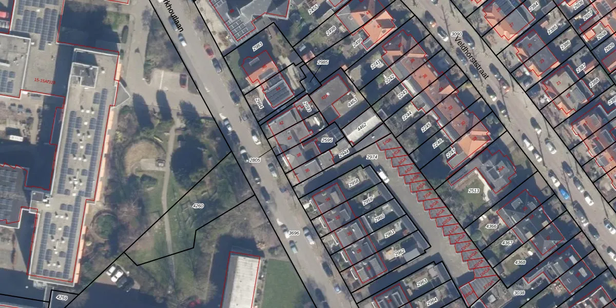 Gebruik de zoekbalk of klik op een perceel voor informatie over de adressen binnen dit perceel.