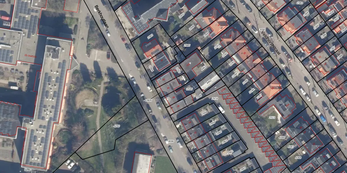 Gebruik de zoekbalk of klik op een perceel voor informatie over de adressen binnen dit perceel.