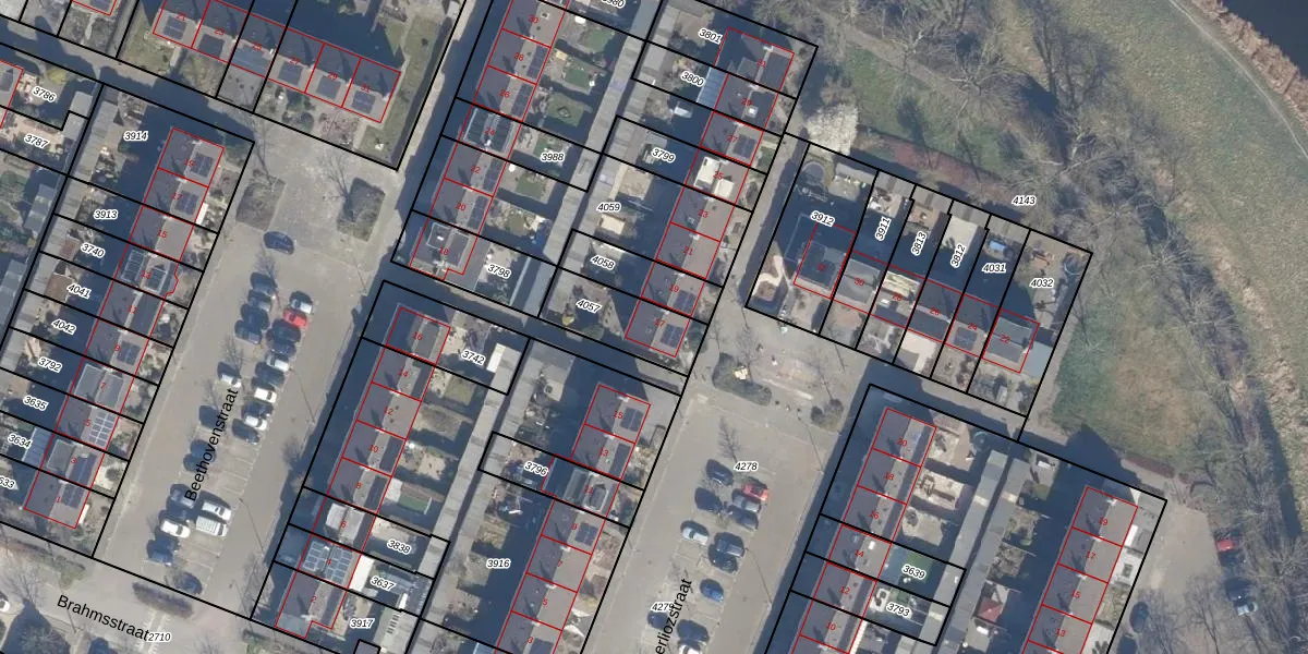 Gebruik de zoekbalk of klik op een perceel voor informatie over de adressen binnen dit perceel.