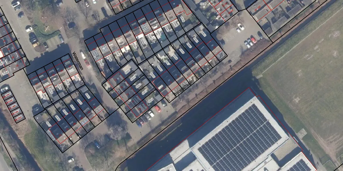 Gebruik de zoekbalk of klik op een perceel voor informatie over de adressen binnen dit perceel.