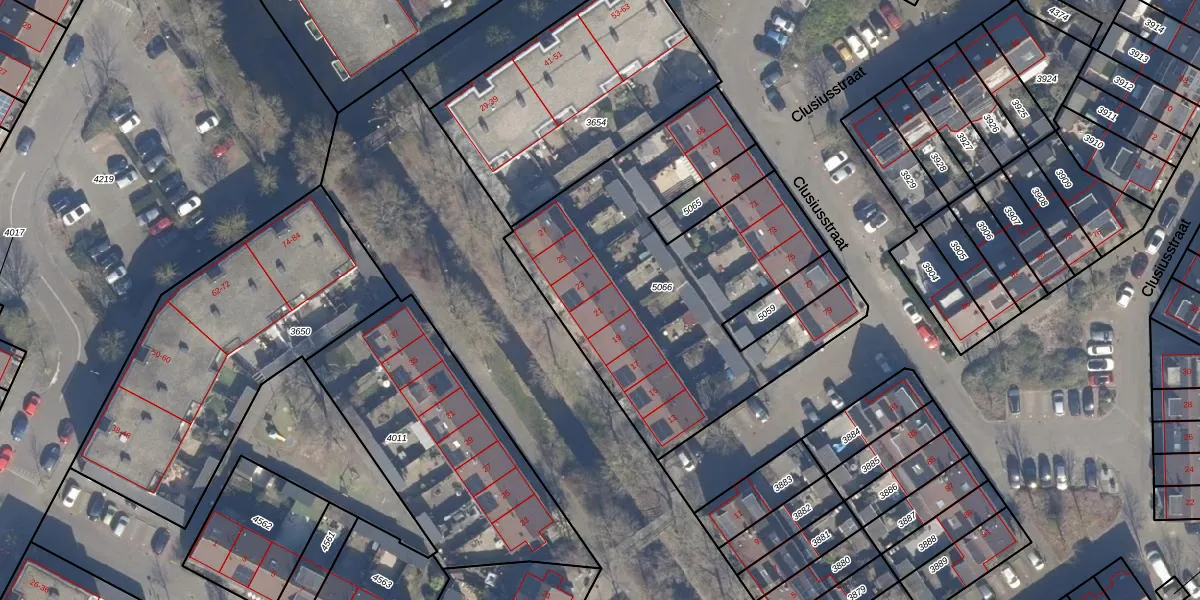 Clusiusstraat 21 is gelegen op kadastraal perceel LSE00C5066. Deze kadastrale aanduiding is uniek en wordt gebruikt door het Kadaster om eigendomsrechten en andere zakelijke rechten vast te leggen. Het perceel maakt onderdeel uit van de kadastrale gemeente Lisse.