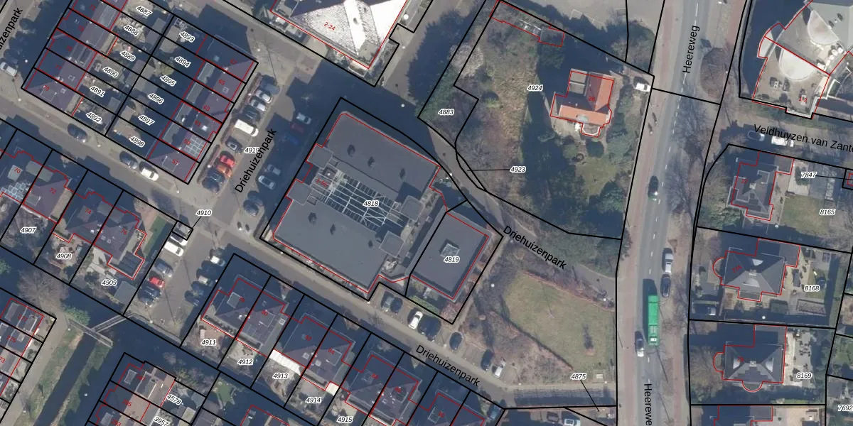 Driehuizenpark 13 is gelegen op kadastraal perceel LSE00C4818. Deze kadastrale aanduiding is uniek en wordt gebruikt door het Kadaster om eigendomsrechten en andere zakelijke rechten vast te leggen. Het perceel maakt onderdeel uit van de kadastrale gemeente Lisse.