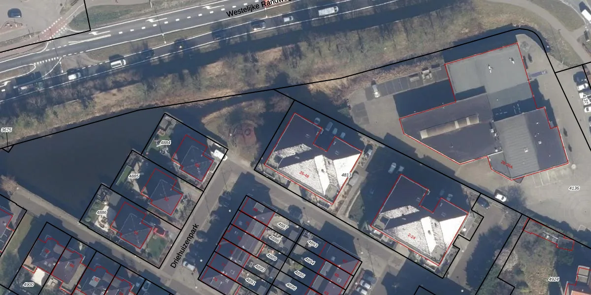 Het perceel waarop Driehuizenpark 38 staat heeft een oppervlakte van 2164 m². Dit is een zeer groot perceel. De perceeloppervlakte wordt geregistreerd door het Kadaster. Gedetailleerde informatie over de maten van dit perceel kunt u vinden in het rapport Kadastrale kaart met maatvoering van Driehuizenpark 38.