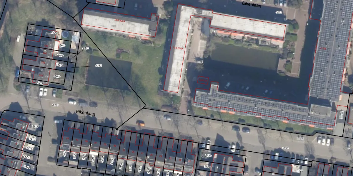 Eikenlaan 218 is gelegen op kadastraal perceel LSE00C5081. Deze kadastrale aanduiding is uniek en wordt gebruikt door het Kadaster om eigendomsrechten en andere zakelijke rechten vast te leggen. Het perceel maakt onderdeel uit van de kadastrale gemeente Lisse.