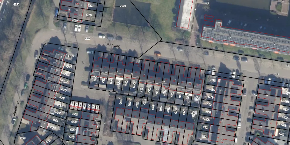 Gebruik de zoekbalk of klik op een perceel voor informatie over de adressen binnen dit perceel.
