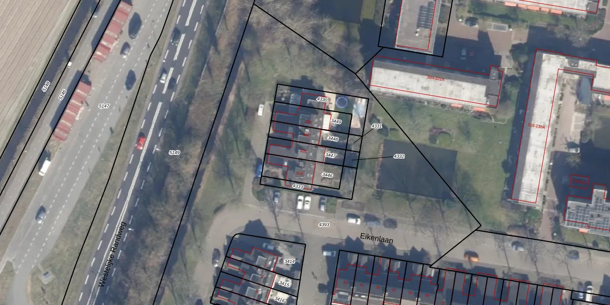 Eikenlaan 326 is gelegen op kadastraal perceel LSE00C3447. Deze kadastrale aanduiding is uniek en wordt gebruikt door het Kadaster om eigendomsrechten en andere zakelijke rechten vast te leggen. Het perceel maakt onderdeel uit van de kadastrale gemeente Lisse.