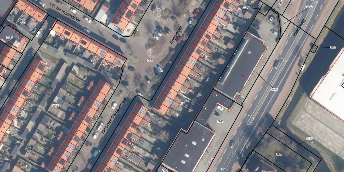 Het perceel waarop Engelplein 11 staat heeft een oppervlakte van 6575 m². Dit is een zeer groot perceel. De perceeloppervlakte wordt geregistreerd door het Kadaster. Gedetailleerde informatie over de maten van dit perceel kunt u vinden in het rapport Kadastrale kaart met maatvoering van Engelplein 11.