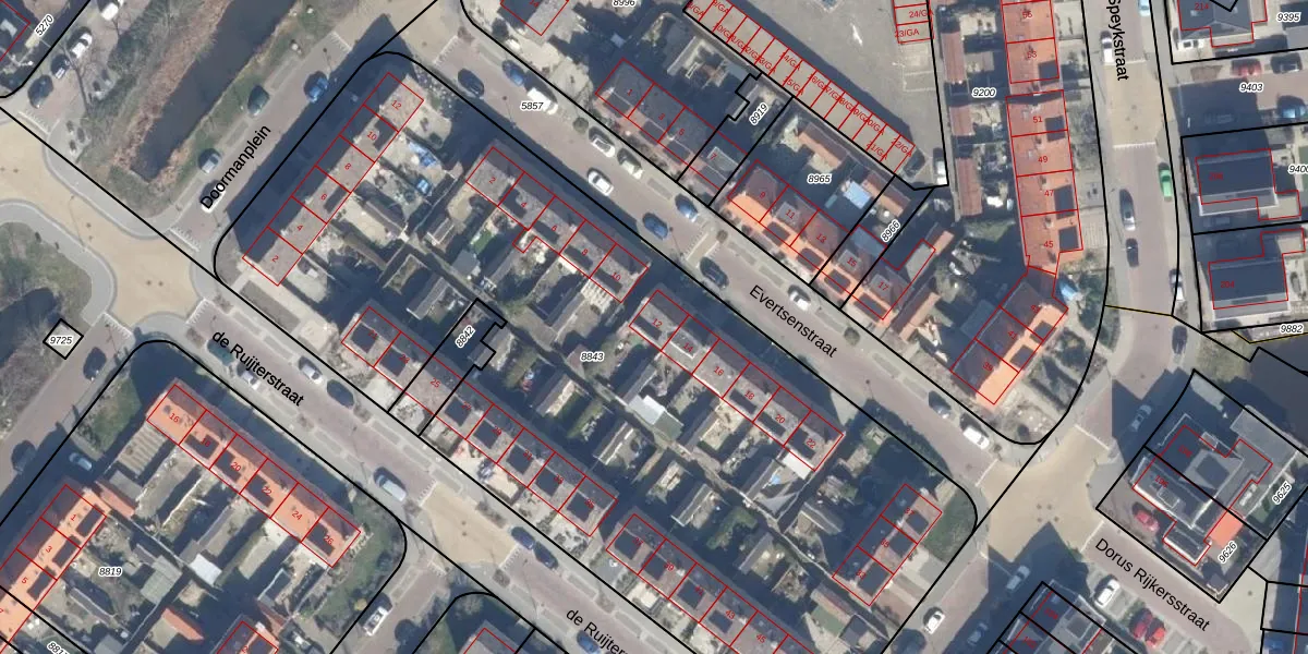 Evertsenstraat 12 is gelegen op kadastraal perceel LSE00D8843. Deze kadastrale aanduiding is uniek en wordt gebruikt door het Kadaster om eigendomsrechten en andere zakelijke rechten vast te leggen. Het perceel maakt onderdeel uit van de kadastrale gemeente Lisse.