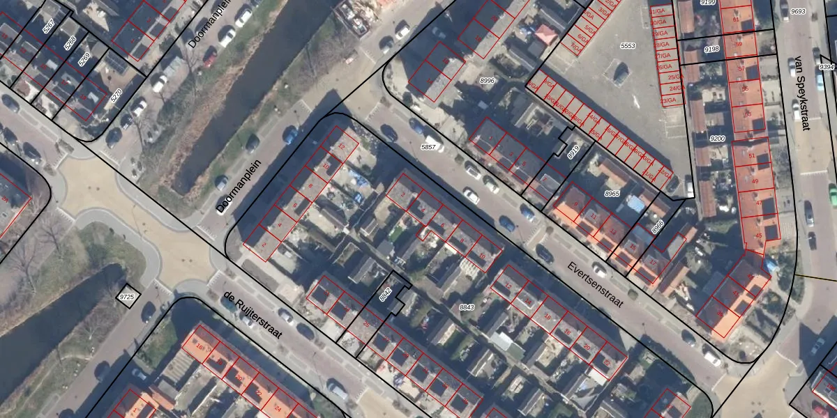 Het perceel waarop Evertsenstraat 4 staat heeft een oppervlakte van 5170 m². Dit is een zeer groot perceel. De perceeloppervlakte wordt geregistreerd door het Kadaster. Gedetailleerde informatie over de maten van dit perceel kunt u vinden in het rapport Kadastrale kaart met maatvoering van Evertsenstraat 4.