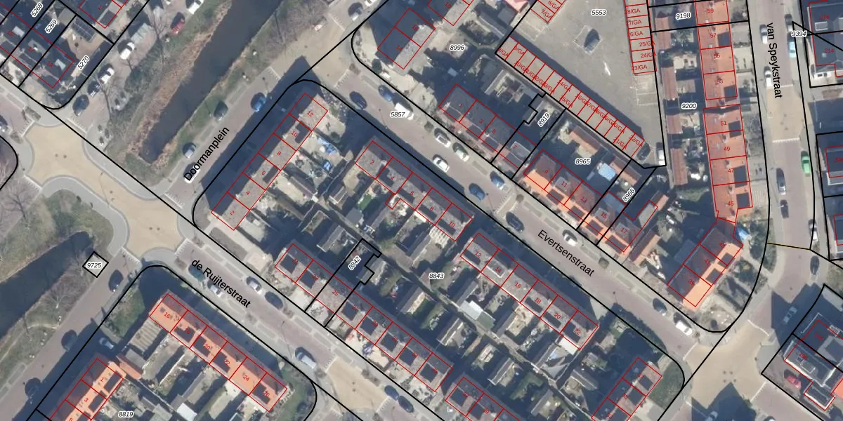 Het perceel waarop Evertsenstraat 8 staat heeft een oppervlakte van 5170 m². Dit is een zeer groot perceel. De perceeloppervlakte wordt geregistreerd door het Kadaster. Gedetailleerde informatie over de maten van dit perceel kunt u vinden in het rapport Kadastrale kaart met maatvoering van Evertsenstraat 8.