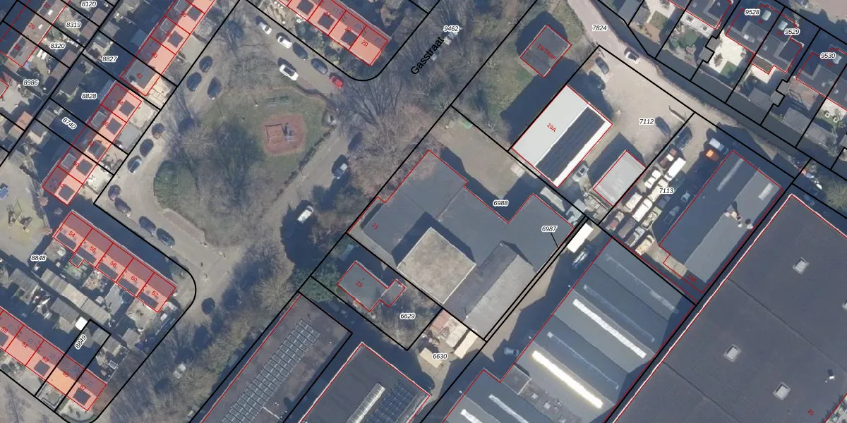 Het perceel waarop Gasstraat 21 staat heeft een oppervlakte van 1580 m². Dit is een zeer groot perceel. De perceeloppervlakte wordt geregistreerd door het Kadaster. Gedetailleerde informatie over de maten van dit perceel kunt u vinden in het rapport Kadastrale kaart met maatvoering van Gasstraat 21.