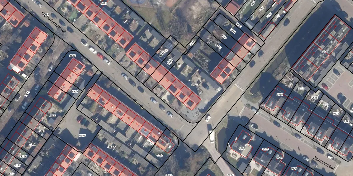 Geraniumstraat 37 is gelegen op kadastraal perceel LSE00D9869. Deze kadastrale aanduiding is uniek en wordt gebruikt door het Kadaster om eigendomsrechten en andere zakelijke rechten vast te leggen. Het perceel maakt onderdeel uit van de kadastrale gemeente Lisse.