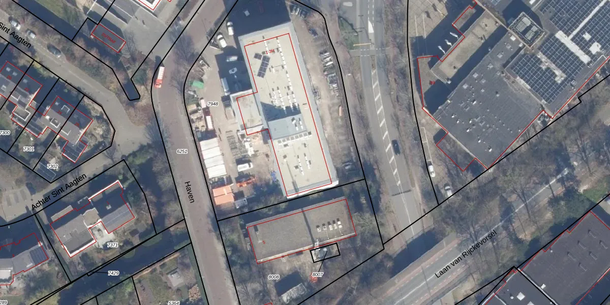 Het perceel waarop Haven 1-B-010 staat heeft een oppervlakte van 3153 m². Dit is een zeer groot perceel. De perceeloppervlakte wordt geregistreerd door het Kadaster. Gedetailleerde informatie over de maten van dit perceel kunt u vinden in het rapport Kadastrale kaart met maatvoering van Haven 1-B-010.