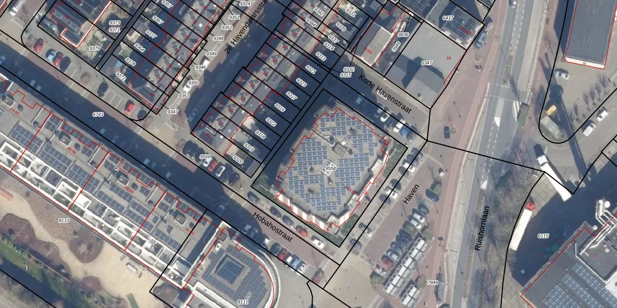 Het perceel waarop Haven 104 staat heeft een oppervlakte van 1340 m². Dit is een zeer groot perceel. De perceeloppervlakte wordt geregistreerd door het Kadaster. Gedetailleerde informatie over de maten van dit perceel kunt u vinden in het rapport Kadastrale kaart met maatvoering van Haven 104.