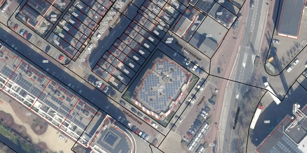 Het perceel waarop Haven 106 staat heeft een oppervlakte van 1340 m². Dit is een zeer groot perceel. De perceeloppervlakte wordt geregistreerd door het Kadaster. Gedetailleerde informatie over de maten van dit perceel kunt u vinden in het rapport Kadastrale kaart met maatvoering van Haven 106.