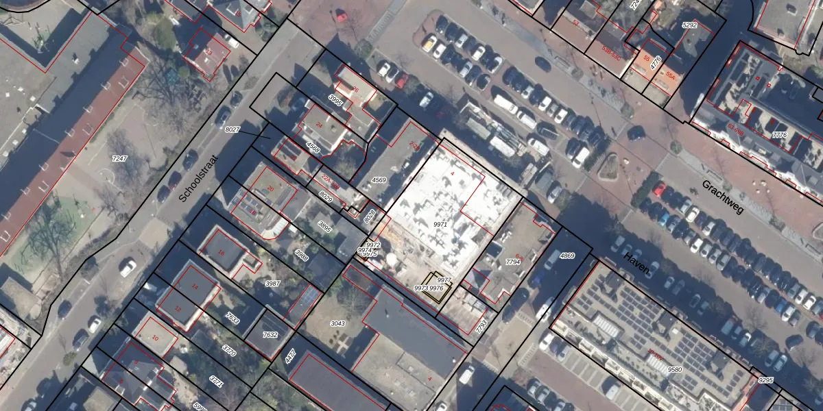 Het perceel waarop Haven 4-A-004 staat heeft een oppervlakte van 835 m². Dit is een groot perceel. De perceeloppervlakte wordt geregistreerd door het Kadaster. Gedetailleerde informatie over de maten van dit perceel kunt u vinden in het rapport Kadastrale kaart met maatvoering van Haven 4-A-004.