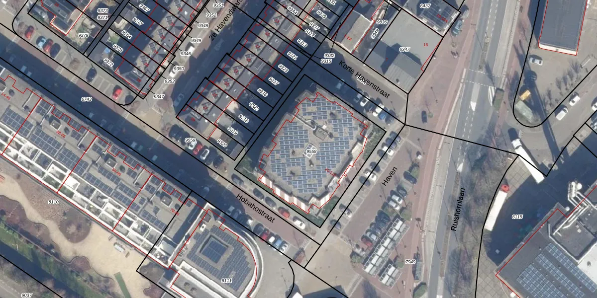 Het perceel waarop Haven 88 staat heeft een oppervlakte van 1340 m². Dit is een zeer groot perceel. De perceeloppervlakte wordt geregistreerd door het Kadaster. Gedetailleerde informatie over de maten van dit perceel kunt u vinden in het rapport Kadastrale kaart met maatvoering van Haven 88.