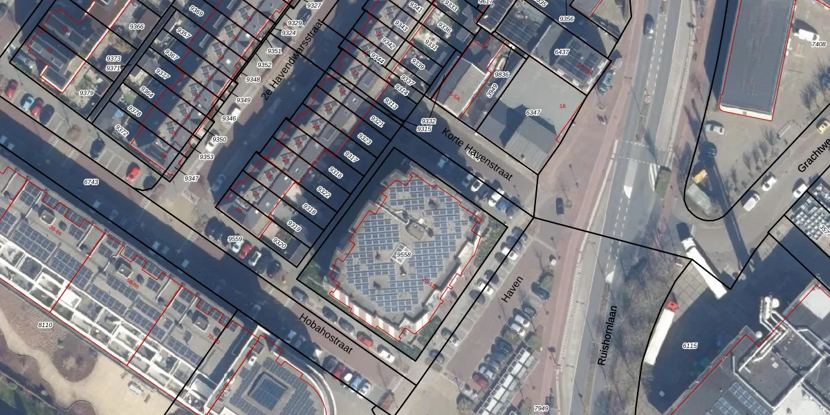 Het perceel waarop Haven 94 staat heeft een oppervlakte van 1340 m². Dit is een zeer groot perceel. De perceeloppervlakte wordt geregistreerd door het Kadaster. Gedetailleerde informatie over de maten van dit perceel kunt u vinden in het rapport Kadastrale kaart met maatvoering van Haven 94.