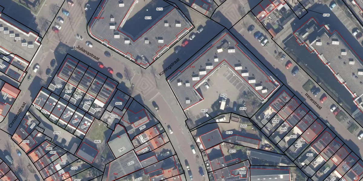 Het perceel waarop Koningstraat 12 staat heeft een oppervlakte van 1998 m². Dit is een zeer groot perceel. De perceeloppervlakte wordt geregistreerd door het Kadaster. Gedetailleerde informatie over de maten van dit perceel kunt u vinden in het rapport Kadastrale kaart met maatvoering van Koningstraat 12.