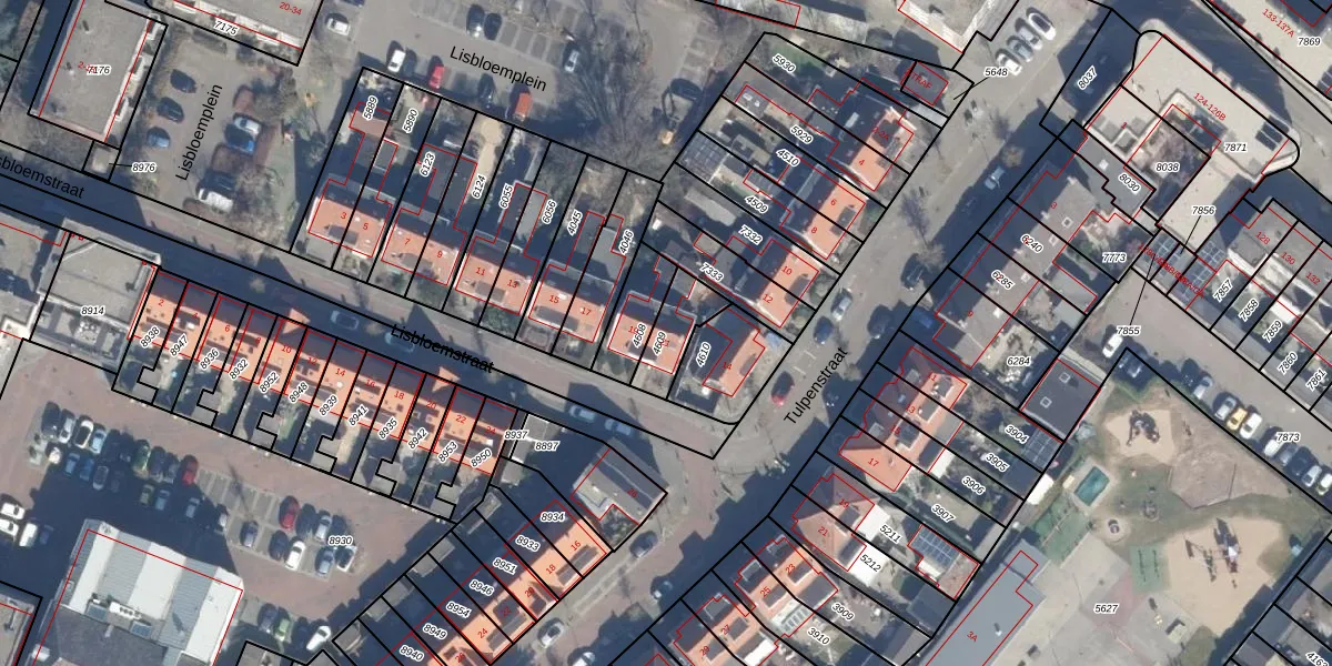 Het perceel waarop Lisbloemstraat 21 staat heeft een oppervlakte van 118 m². Dit is een middelgroot perceel. De perceeloppervlakte wordt geregistreerd door het Kadaster. Gedetailleerde informatie over de maten van dit perceel kunt u vinden in het rapport Kadastrale kaart met maatvoering van Lisbloemstraat 21.