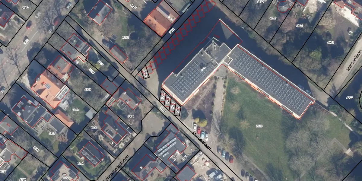 Het perceel waarop Marconilaan 87 staat heeft een oppervlakte van 8043 m². Dit is een zeer groot perceel. De perceeloppervlakte wordt geregistreerd door het Kadaster. Gedetailleerde informatie over de maten van dit perceel kunt u vinden in het rapport Kadastrale kaart met maatvoering van Marconilaan 87.