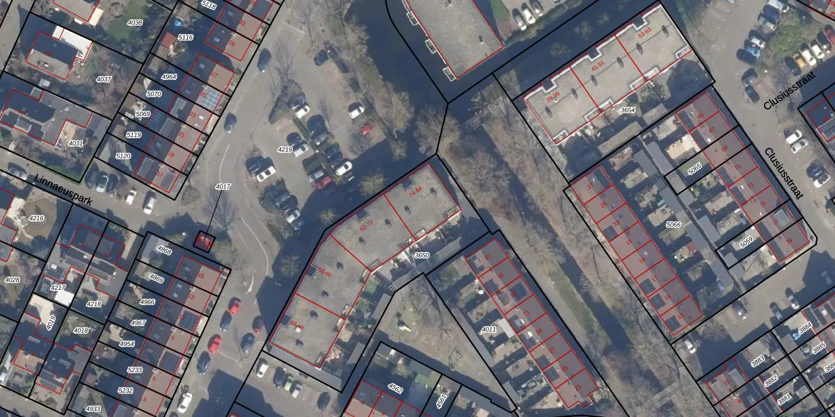 Het adres ligt op het perceel LSE00-C-3650, dat zich in de kadastrale gemeente Lisse bevindt. De gemiddelde perceelgrootte in Lisse is 1685,83 m². Dit perceel is kleiner: de perceeloppervlakte bedraagt 1315 m². Het grootste perceel in de kadastrale gemeente is 53,7 ha. Het kleinste perceel heeft een oppervlakte van 0 m². Op het perceel zijn 24 adressen aanwezig. De laatste wijziging in het de Basisregistratie Kadaster (BRK) was op 16-12-1998.