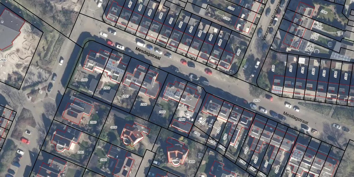 Het perceel waarop Mesdagstraat 2-E staat heeft een oppervlakte van 357 m². Dit is een groot perceel. De perceeloppervlakte wordt geregistreerd door het Kadaster. Gedetailleerde informatie over de maten van dit perceel kunt u vinden in het rapport Kadastrale kaart met maatvoering van Mesdagstraat 2-E.