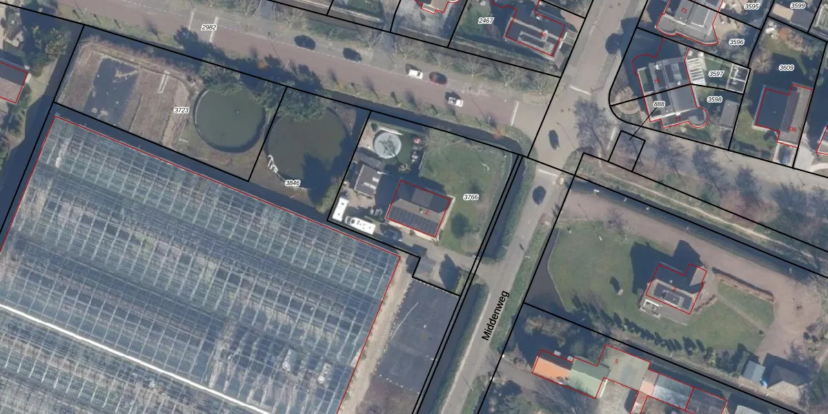Middenweg 2 is gelegen op kadastraal perceel LSE00E3766. Deze kadastrale aanduiding is uniek en wordt gebruikt door het Kadaster om eigendomsrechten en andere zakelijke rechten vast te leggen. Het perceel maakt onderdeel uit van de kadastrale gemeente Lisse.