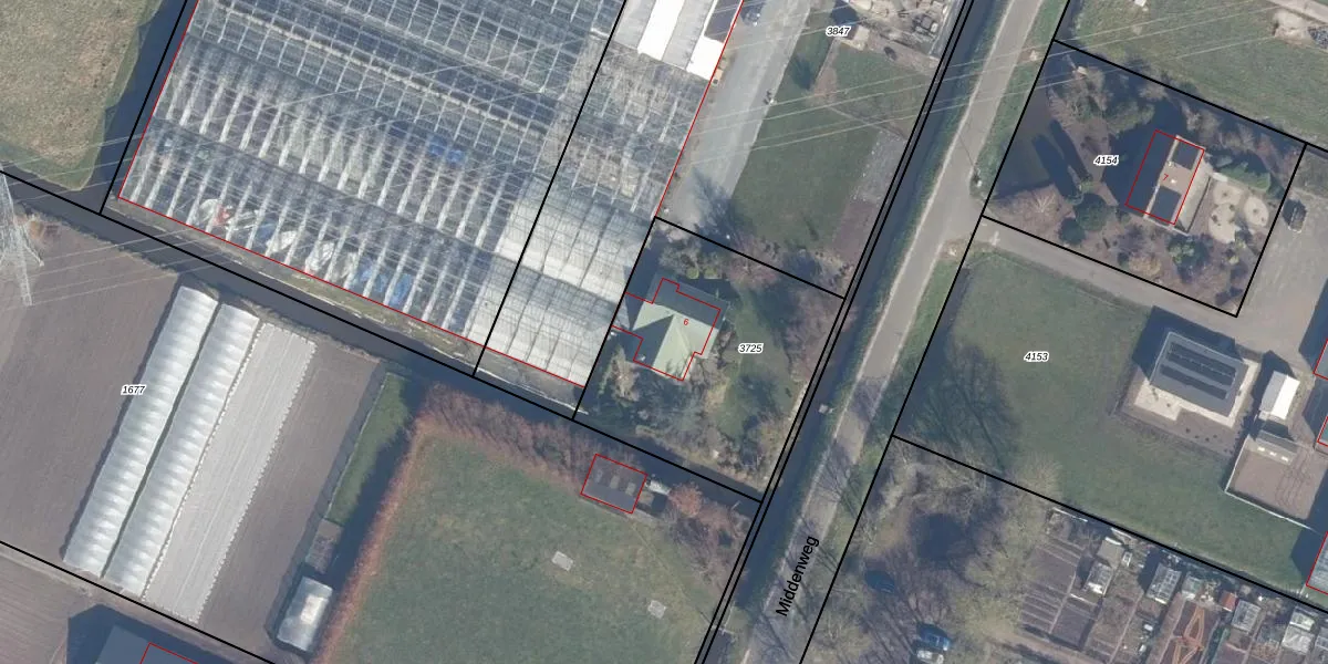 Middenweg 6 is gelegen op kadastraal perceel LSE00E3725. Deze kadastrale aanduiding is uniek en wordt gebruikt door het Kadaster om eigendomsrechten en andere zakelijke rechten vast te leggen. Het perceel maakt onderdeel uit van de kadastrale gemeente Lisse.
