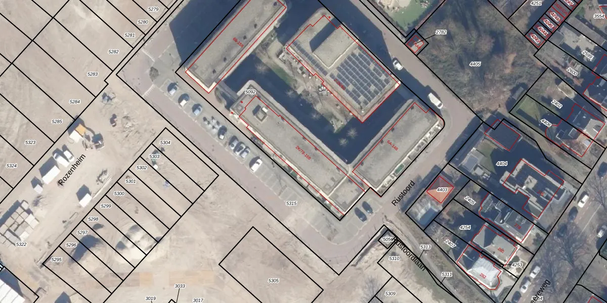 Het perceel waarop Rustoord 104 staat heeft een oppervlakte van 3705 m². Dit is een zeer groot perceel. De perceeloppervlakte wordt geregistreerd door het Kadaster. Gedetailleerde informatie over de maten van dit perceel kunt u vinden in het rapport Kadastrale kaart met maatvoering van Rustoord 104.